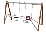 Sedátko baby je vyrobeno z pryže a je vyztuženo hliníkovou vložkou. Sedátko Normal je hliníkové, obalené měkkou a pohodlnou pryží. Houpačka je zavěšena pomocí nerezových řetězů na kovovém nosníku. Veškerý spojovací materiál je pozinkovaný nebo nerezový.