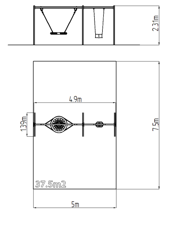 | Povrch, tlumící pád: | dle normy EN 1177 37,5 m2 |