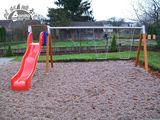 Sedátko a houpačkové závěsy nejsou součástí houpačky. Nutné přikoupit sedátko (2 ks) dle výběru a houpačkové závěsy (4 ks). Řetězová dvojhoupačka se skluzavkou RH250D - s podestou a kovovým, pozinkovaným ráhnem, výška pádu 1,5 m. Na výběr jsou čtyři barevné varianty skluzavek - červená, modrá, zelená a žlutá. Více informací