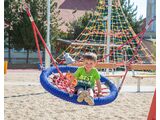 Řetězová houpačka RH160K - celokovová, průměr hnízda 1 m, výška pádu 1 m, jako dopadová plocha postačí trávník. Na výběr jsou tři barevné varianty konstrukce - hnědá, modrá a červená. Více informací