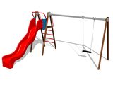 Řetězová houpačka se skluzavkou RH6151K - celokovová, s podestou, výška pádu 1,5 m. Na výběr jsou tři barevné varianty konstrukce - modrá, červená a hnědá a čtyři barevné varianty skluzavek - červená, žlutá, zelená a modrá. Více informací