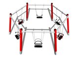 6x kovový nosník (pozink), 4x Sedátko Normal, 2x Sedátko Baby. Na výběr jsou tři barevné varianty konstrukce - hnědá, modrá a červená. Více informací