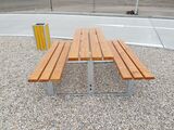 Konstrukce stolu a laviček jsou vyrobeny z konstrukční oceli, která je proti korozi chráněna žárovým zinkováním, čímž se docílí velmi výrazného prodloužení životnosti sedací soupravy. Veškerý spojovací materiál je pozinkovaný nebo nerezový.