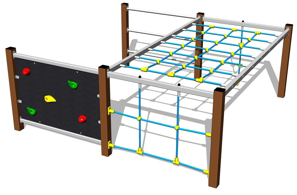 Lana a sítě jsou vyrobeny z materiálu HERKULES (16 mm lana z polypropylenu s vnitřním ocelovým jádrem) a jsou spojována plastovými spoji. Lezecká stěna je vyrobena z HPL (vysokotlaký laminát, který se vyznačuje vysokou barevnou stálostí, odolností proti poškrábání a odolností proti vodě). Horolezecké chyty jsou vyrobeny z polyesteru, to zaručuje dlouhou životnost, stálobarevnost i šetrný povrch pro kůži na rukou. Veškerý spojovací materiál je pozinkovaný nebo nerezový.
