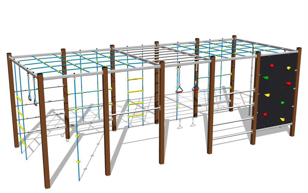 Lana a sítě jsou vyrobeny z materiálu HERKULES (16 mm lana z polypropylenu s vnitřním ocelovým jádrem) a jsou spojovány plastovými spoji. Lezecká stěna je vyrobena z HPL (vysokotlaký laminát, který se vyznačuje vysokou barevnou stálostí, odolností proti poškrábání a odolností proti vodě). Horolezecké chyty jsou vyrobeny z polyesteru, to zaručuje dlouhou životnost, stálobarevnost i šetrný povrch pro kůži na rukou. Veškerý spojovací materiál je pozinkovaný nebo nerezový.