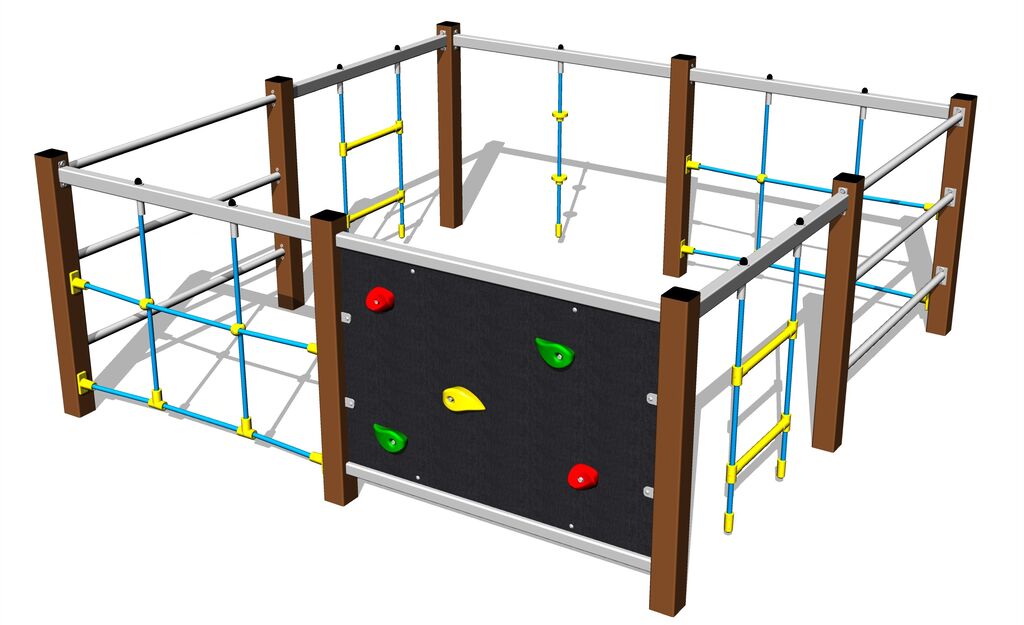 Lana a sítě jsou vyrobeny z materiálu HERKULES (16 mm lana z polypropylenu s vnitřním ocelovým jádrem) a jsou spojovány plastovými spoji. Lezecká stěna je vyrobena z HPL (vysokotlaký laminát, který se vyznačuje vysokou barevnou stálostí, odolností proti poškrábání a odolností proti vodě). Horolezecké chyty jsou vyrobeny z polyesteru, to zaručuje dlouhou životnost, stálobarevnost i šetrný povrch pro kůži na rukou. Veškerý spojovací materiál je pozinkovaný nebo nerezový.