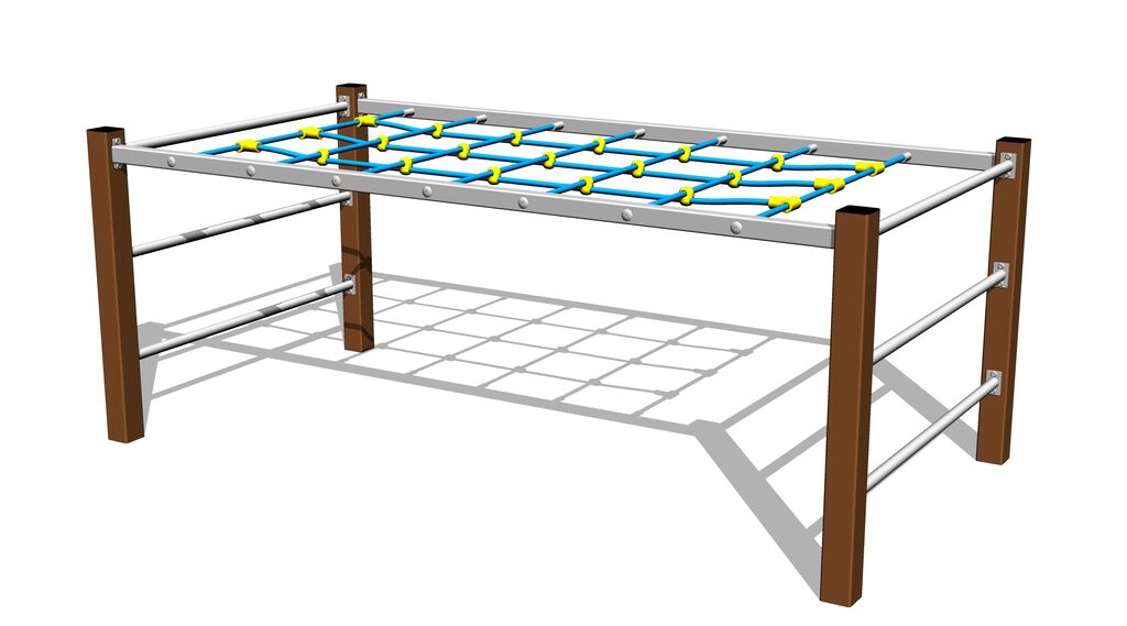 Šplhací síť, tyčový přelez, žebřiny, 2x lanový žebřík, šplhací lano, lezecká stěna, síť.