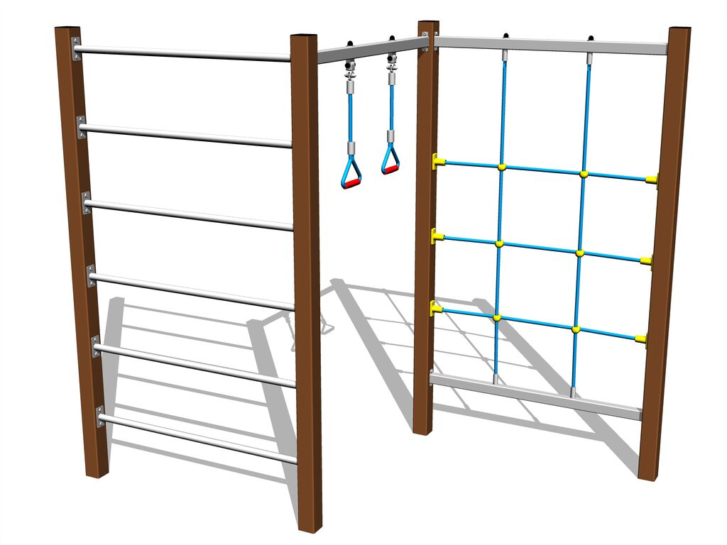 Šplhací síť, houpací lanové kruhy, žebřiny
