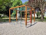 2x šplhací lano, 2x šplhací tyč, šplhací síť, lanový žebřík, žebřiny, hrazda, ručkovací síť. Více informací