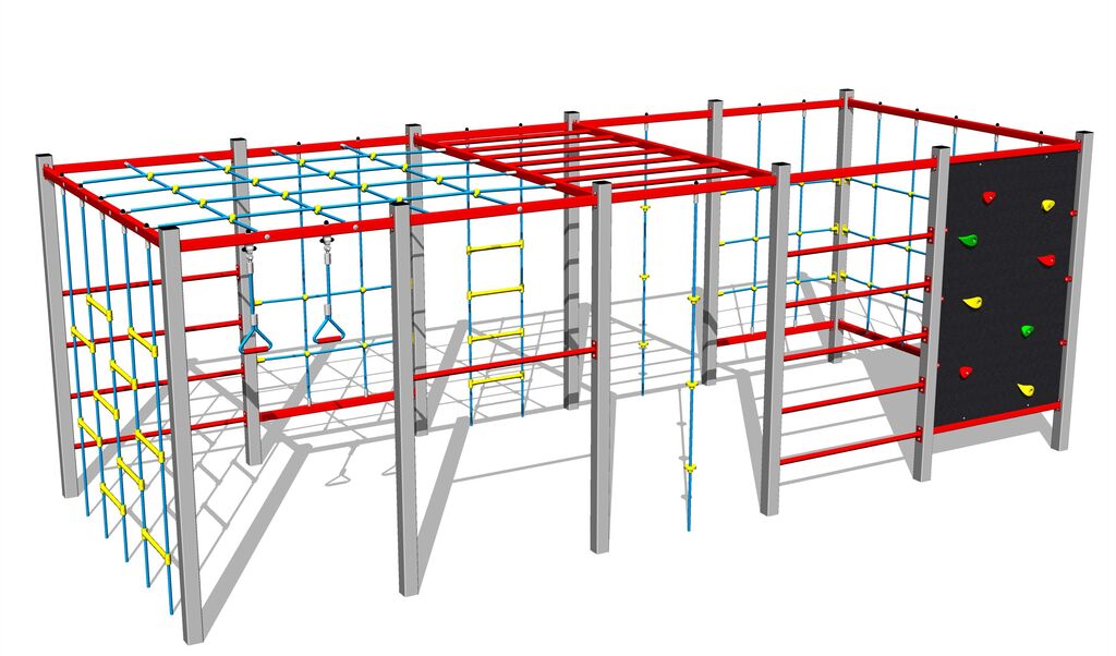 Lana a sítě jsou vyrobeny z materiálu HERKULES (16 mm lana z polypropylenu s vnitřním ocelovým jádrem) a jsou spojovány plastovými spoji. Lezecká stěna je vyrobena z HPL (vysokotlaký laminát, který se vyznačuje vysokou barevnou stálostí, odolností proti poškrábání a odolností proti vodě). Horolezecké chyty jsou vyrobeny z polyesteru, to zaručuje dlouhou životnost, stálobarevnost i šetrný povrch pro kůži na rukou. Veškerý spojovací materiál je pozinkovaný nebo nerezový.