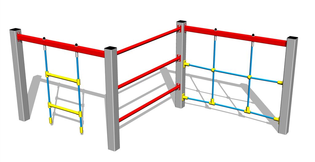 Tyčový přelez, šplhací síť, síť, žebřiny.