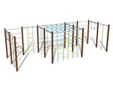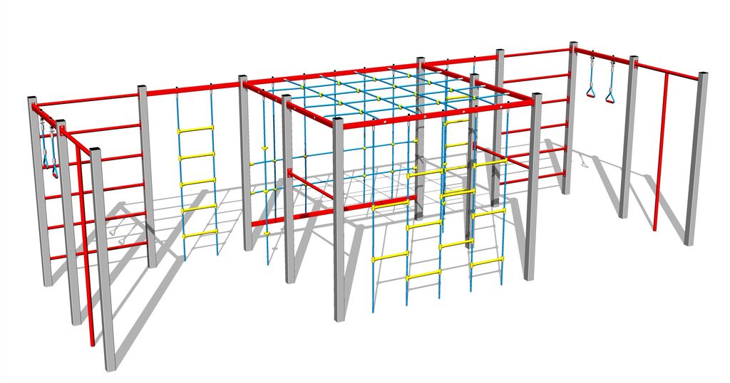 2x šplhací lano, 2x šplhací tyč, šplhací síť, lanový žebřík, žebřiny, ručkovací síť, lezecká stěna.