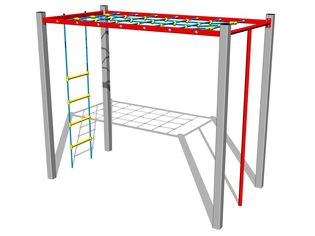 Šplhací tyč, šplhací síť, žebřiny, houpací lanové kruhy