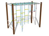 Šplhací tyč, šplhací síť, žebřiny, lezecká stěna, houpací lanové kruhy.