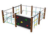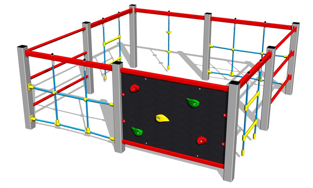 Lana a sítě jsou vyrobeny z materiálu HERKULES (16 mm lana z polypropylenu s vnitřním ocelovým jádrem) a jsou spojovány plastovými spoji. Lezecká stěna je vyrobena z HPL (vysokotlaký laminát, který se vyznačuje vysokou barevnou stálostí, odolností proti poškrábání a odolností proti vodě). Horolezecké chyty jsou vyrobeny z polyesteru, to zaručuje dlouhou životnost, stálobarevnost i šetrný povrch pro kůži na rukou. Veškerý spojovací materiál je pozinkovaný nebo nerezový.