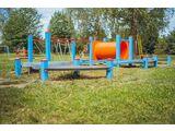 Stezka dovednosti SD101K - řetězová lávka, prolézací tunel, síť, 3x kladina, 4x podesta, 5x step. Výška pádu do 1 m, jako dopadová plocha postačí trávník. Na výběr jsou tři barevné varianty konstrukce - stříbrná, hnědá a modrá. Více informací