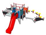 Lanová lávka, věž se skluzavkou, prolézací tunel, 5x step, síť, 3x kladina, 4x podesta 2x bariéra. Na výběr jsou dvě barevné varianty konstrukce - stříbrná a hnědá. Více informací
