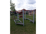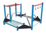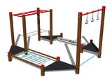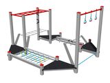 Stezka dovednosti SD104K - ručkovadlo, kladina, síť, 4x podesta, 3x lanové kruhy, lano. Výška pádu do 1 m, jako dopadová plocha postačí trávník. Na výběr jsou tři barevné varianty konstrukce - stříbrná, hnědá a modrá. Více informací