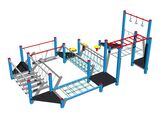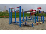 Ručkovadlo, řetězová lávka s trámky, 3x step, síť, 6x podesta, 3x lanové kruhy, lano, lanová lávka, řetězová lávka. Na výběr jsou tři barevné varianty konstrukce - stříbrná, hnědá a modrá. Více informací