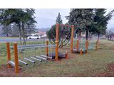 Stezka dovednosti SD106K - lanová lávka, řetězová lávka, 3x lanové kruhy, 2x podesta, lano. Výška pádu do 1 m, jako dopadová plocha postačí trávník. Na výběr jsou tři barevné varianty konstrukce - stříbrná, hnědá a modrá. Více informací