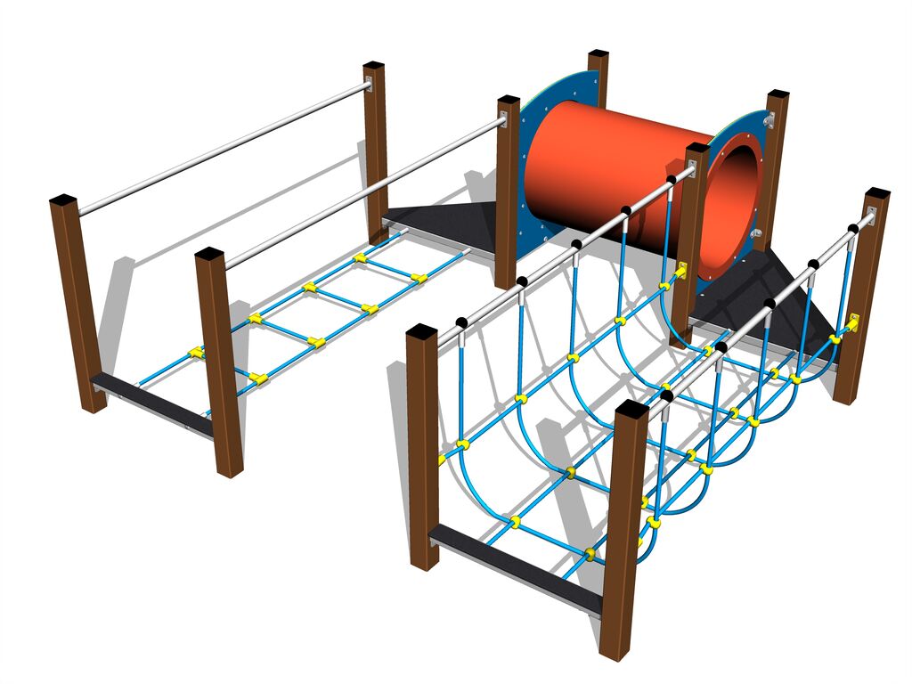 Stezka dovednosti - lanová lávka se sítí, lanová lávka, prolézací tunel, 2x podesta. Na výběr jsou dvě barevné varianty konstrukce - hnědá a stříbrná. Více informací