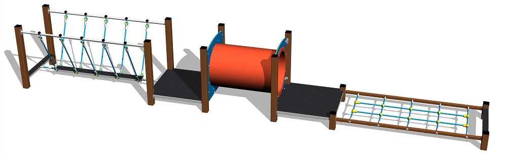 Stezka dovednosti - lanová lávka, prolézací tunel, síť, 2x podesta. Na výběr jsou dvě barevné varianty konstrukce - hnědá a stříbrná. Více informací