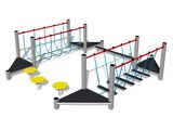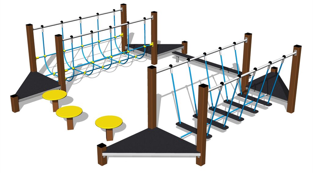 Lanová lávka s nášlapy, lanová lávka se sítí, 4x podesta, 3x step, kladina. Na výběr jsou dvě barevné varianty konstrukce - hnědá a stříbrná. Více informací