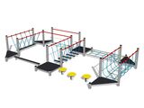 Lanová lávka, lanová lávka s nášlapy, lanová lávka se zavěšeným trámem, lanová lávka se sítí, síť, kladina, 6x podesta, 3x step. Na výběr jsou dvě barevné varianty konstrukce - hnědá a stříbrná. Více informací