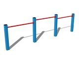Trojhrazda - celokovová, výška pádu 1 m, jako dopadová plocha postačí trávník. Na výběr jsou tři barevné varianty konstrukce - hnědá, červená a modrá. Více informací