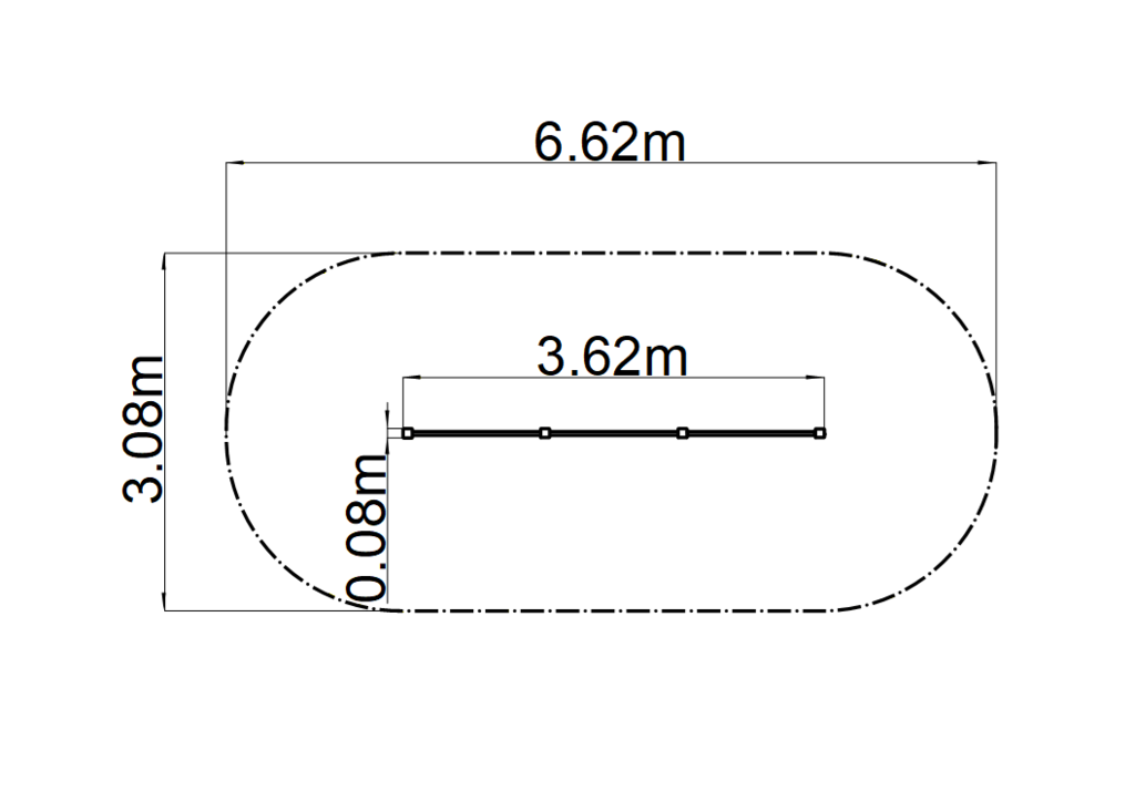 Plocha nutná pro montáž: 6,7 x 3,1 m