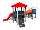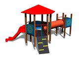 Věž čtyřboká, věž šestiboká, skluzavka, stříška, prolézací tunel mezi věžemi, kolmý žebřík, šikmý výlez s lanem a nášlapy z HDPE, 5x bariéra z HDPE. Více informací
