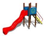 Věž, skluzavka, 2x bariéra, šikmý výlez s nášlapy a kovovými madly. Více informací