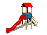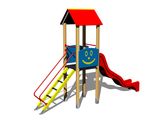 Věž, skluzavka, stříška ve tvaru "A", 2x bariéra, šikmý výlez s nášlapy a kovovými madly. Více informací