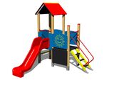 2x věž, skluzavka, stříška ve tvaru "A", 4x bariéra z HDPE, šikmý výlez s nášlapy a kovovými madly, počítadlo, kreslící tabule. Více informací