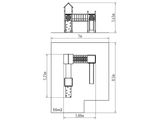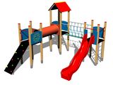3x věž, skluzavka, stříška ve tvaru "A", 5x bariéra z HDPE, kolmý žebřík, šikmá lezecká stěna, lanový most mezi věžemi, prolézací tunel mezi věžemi. Více informací