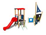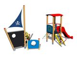 Věž, skluzavka, stříška ve tvaru obloukovém, bariéra, šikmý síťový výlez, šikmý výlez s nášlapy a kovovými madly, 2x bariéra s průzorem, 2x lavice, kormidlo, kotva, stožár s vlajkou, kreslicí tabule. Více informací