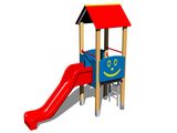Věž, skluzavka, stříška ve tvaru "A", 2x bariéra, kolmý žebřík. Více informací