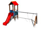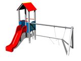 Sedátko a houpačkové závěsy nejsou součástí houpačky. Nutné přikoupit sedátko (1 ks) dle výběru a houpačkové závěsy (2 ks). Věž, skluzavka, stříška ve tvaru "A", 2x bariéra, kolmý žebřík, kovové ráhno. Více informací