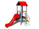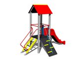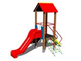 Věž, skluzavka, stříška ve tvaru "A", šikmý výlez s nášlapy a kovovými madly, šikmý výlez s lanem a nášlapy z HDPE, šikmý síťový výlez. Více informací