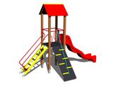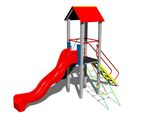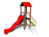 Věž, skluzavka, stříška ve tvaru "A", šikmý výlez s nášlapy a kovovými madly, šikmý výlez s lanem a nášlapy z HDPE, šikmý síťový výlez. Více informací