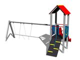 Sedátko a houpačkové závěsy nejsou součástí houpačky. Nutné přikoupit sedátko (2 ks) dle výběru a houpačkové závěsy (4 ks). Věž, skluzavka, stříška ve tvaru "A", 2x bariéra, šikmý výlez s lanem a nášlapy, řetězová dvojhoupačka s kovovým ráhnem. Více informací