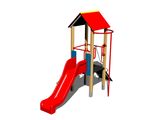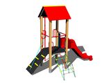 Věž, skluzavka, stříška ve tvaru "A", šikmý výlez s lanem, požární tyč, šikmý síťový výlez. Více informací