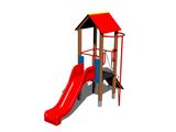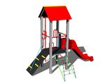 Věž, skluzavka, stříška ve tvaru "A", šikmý výlez s lanem a nášlapy z HDPE, požární tyč, šikmý síťový výlez. Více informací