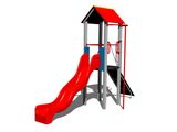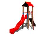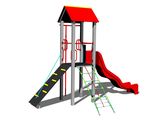 Věž, skluzavka, stříška ve tvaru "A", šikmý výlez s lanem a nášlapy z HDPE, požární tyč, šikmý síťový výlez. Více informací