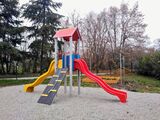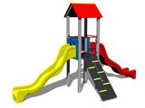 Věž, stříška ve tvaru "A", 2x skluzavka, bariéra, šikmý výlez s lanem a nášlapy. Více informací