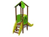 Věž, skluzavka, stříška ve tvaru listu, šikmý výlez s nášlapy a madly z HDPE, 2x bariéra. Více informací