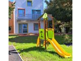 Věž, skluzavka, stříška ve tvaru listu, šikmý výlez s nášlapy a madly z HDPE, 2x bariéra. Více informací