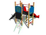 Věž, skluzavka, šikmý výlez s lanem a nášlapy z HDPE, šikmý síťový výlez, 2x bariéra, počítadlo. Více informací