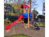 2x věž, skluzavka, stříška ve tvaru "A", 4x bariéra z HDPE, šikmý výlez s lanem a nášlapy HDPE, počítadlo, kreslící tabule. Více informací
