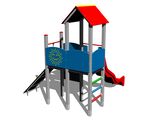2x věž, skluzavka, stříška ve tvaru "A", 4x bariéra z HDPE, šikmý výlez s lanem a nášlapy HDPE, počítadlo, kreslící tabule. Více informací